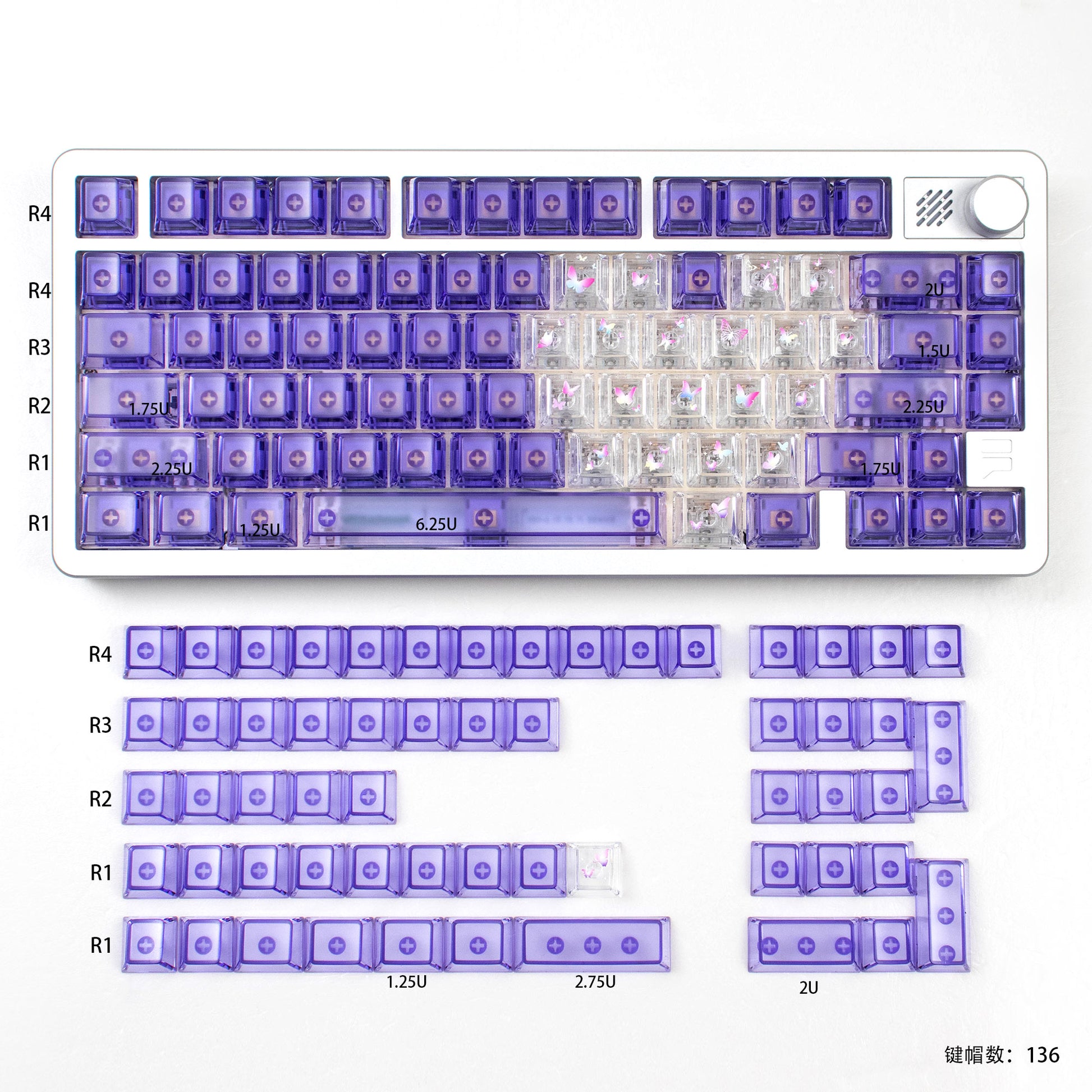 Theme | Purple Twilight Butterfly Frosted PC Keycaps |